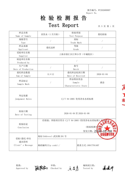 上海市徐汇区汇师小学(总校)(1月 月检 )